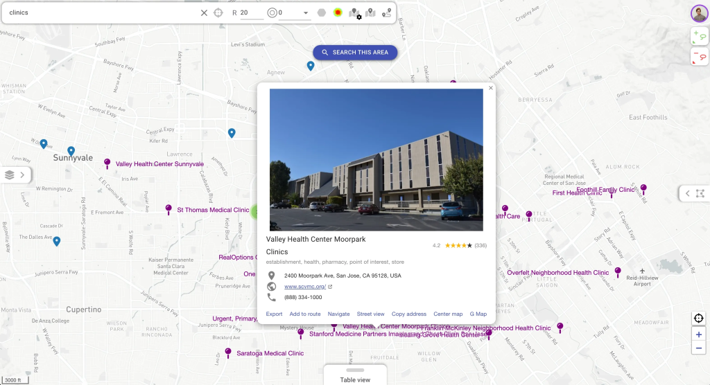 Prospecting where it counts: Filter for counties with high income/population but low customer counts, then run on-map clinic discovery to build targeted prospecting lists.