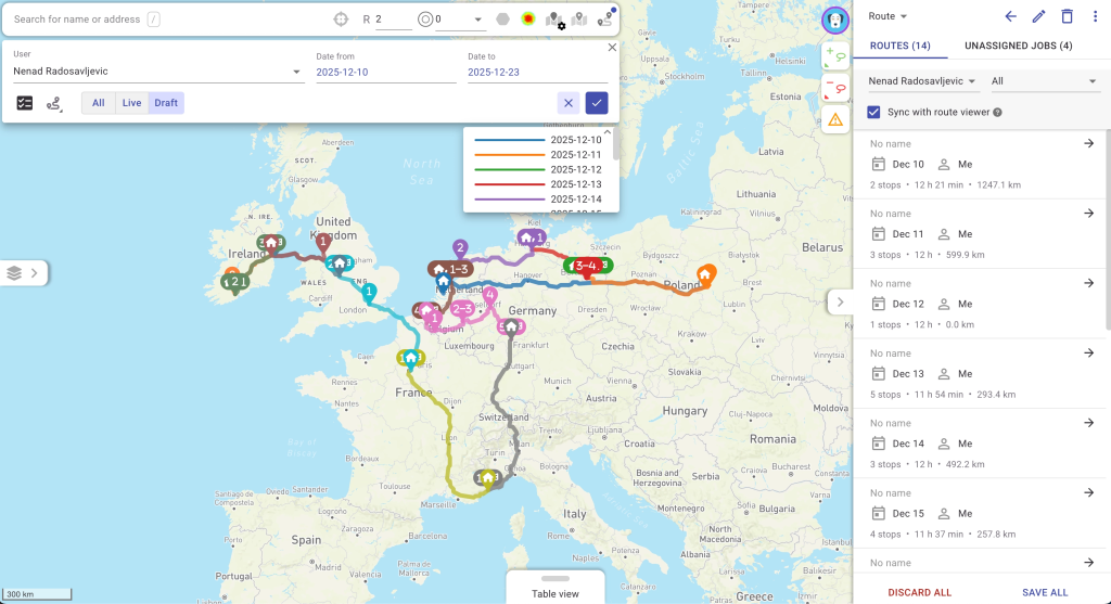Bringing planning, multi-day route optimization, and live status into one map helps teams hit availability windows, respect working hours and max driving time (including overnight stops), and adapt mid-route with confidence—fewer surprises, steadier schedules, and clean CRM write-back from dispatch to delivery.